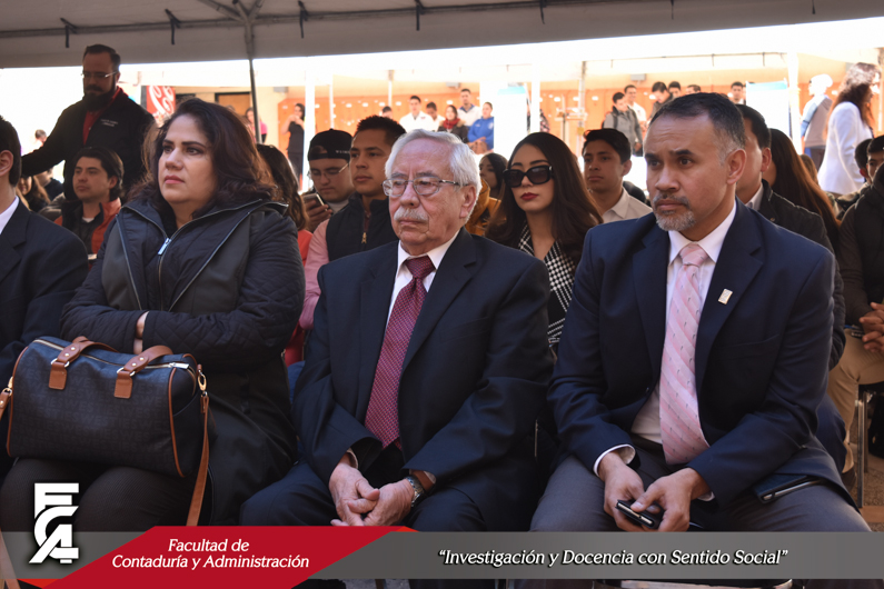 El presídium contó con la presencia del M.S.I. Marcelino Fraire Rodríguez; Secretario de Extensión y Difusión Cultural; en representación del Director de la Facultad de Contaduría y Administración, el M.F. Luis Raúl Sánchez Acosta; la Lic. Krissel García Hernández, responsable del Programa Estatal de VIH e ITS de la Secretaría de Salud; el Dr. César Ramón Aguilar Torres, Secretario de Extensión y Difusión Cultural de la Facultad de Medicina y Ciencias Biomédicas; el Dr. Óscar Jesús Buenrostro Rodríguez, Secretario de Extensión y Difusión Cultural de la Facultad de Odontología; la M.A. Iris Lucero Cerda Rivera, Secretaria de Extensión y Difusión Cultural de la Facultad de Enfermería y Nutriología; el M.P.A. Juan Hernández Martínez, Secretario de Extensión y Difusión Cultural de la Facultad de Ciencias de la Cultura Física; y el C. Guillermo Quintana Chávez, Vicepresidente de la Sociedad de Alumnos de la FCA.