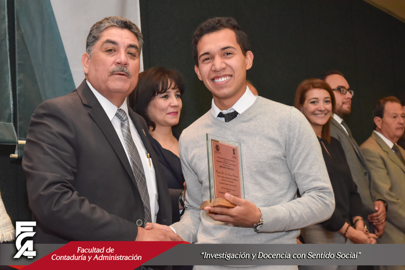 El Director M.F. Luis Raúl Sánchez Acosta ofreció a los presentes unas emotivas palabras en las cuales resaltó sentirse muy orgulloso de acompañar a los alumnos más destacados de la Facultad, “ser alumno de excelencia de la Facultad de Contaduría y Administración no es tarea fácil, y pertenecer a este selecto grupo no se logra solo con el talento nato, es preciso trabajar arduamente, ser constante dedicando largas jornadas al estudio, preparación de presentaciones, proyectos y exámenes, es por eso por lo que los exhorto a no dejar ese entusiasmo, dedicación y empeño que hoy se les reconoce”, comentó.