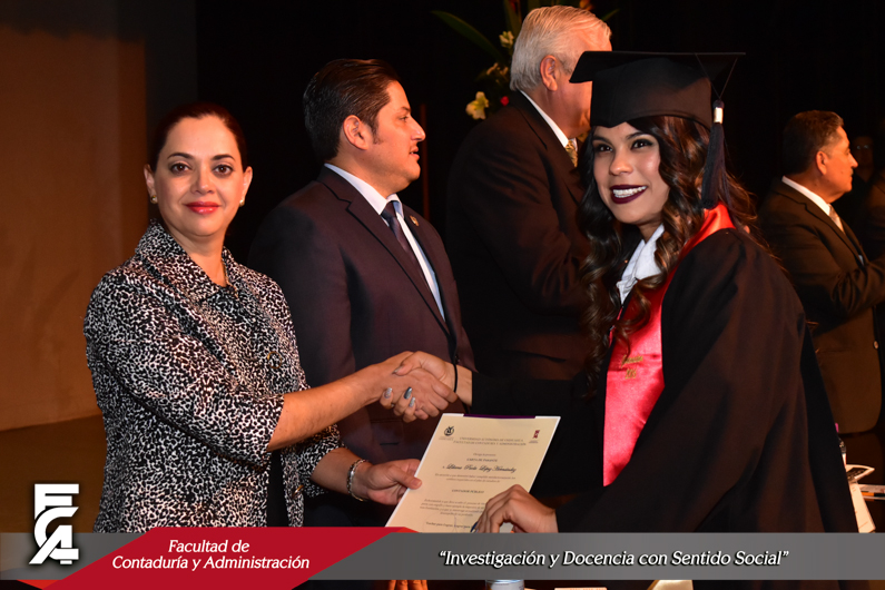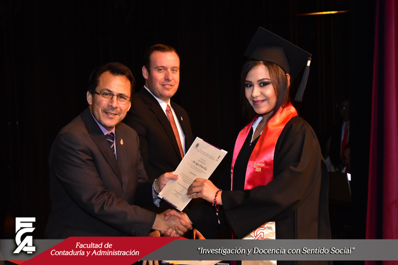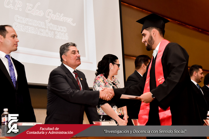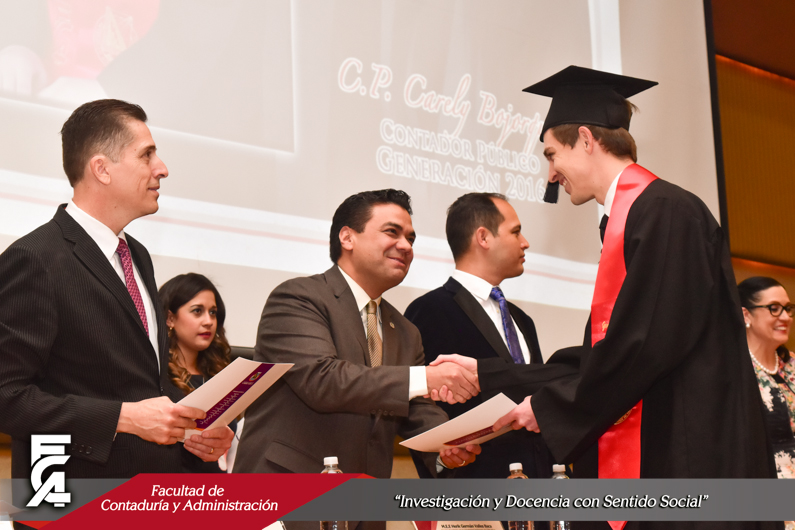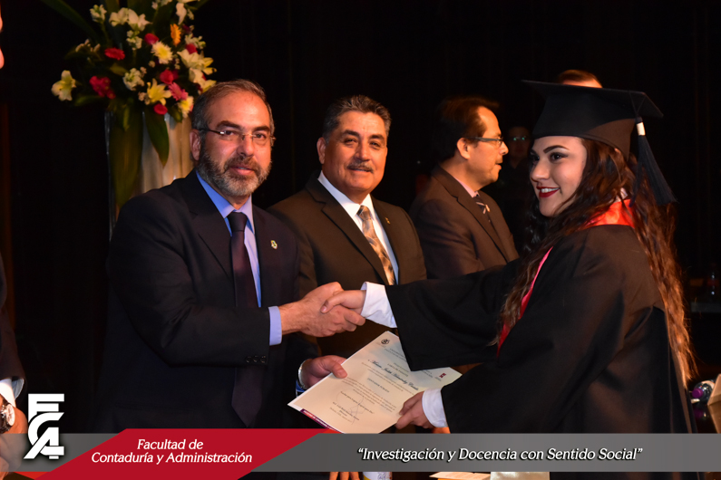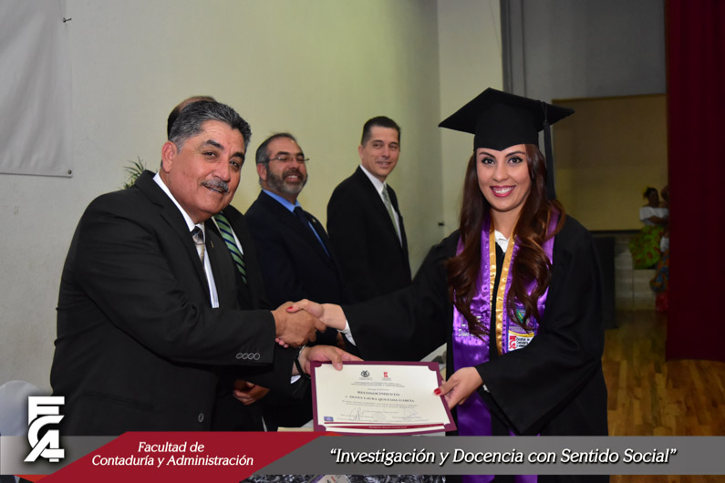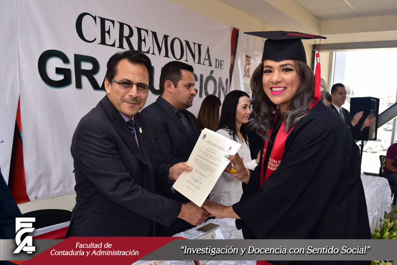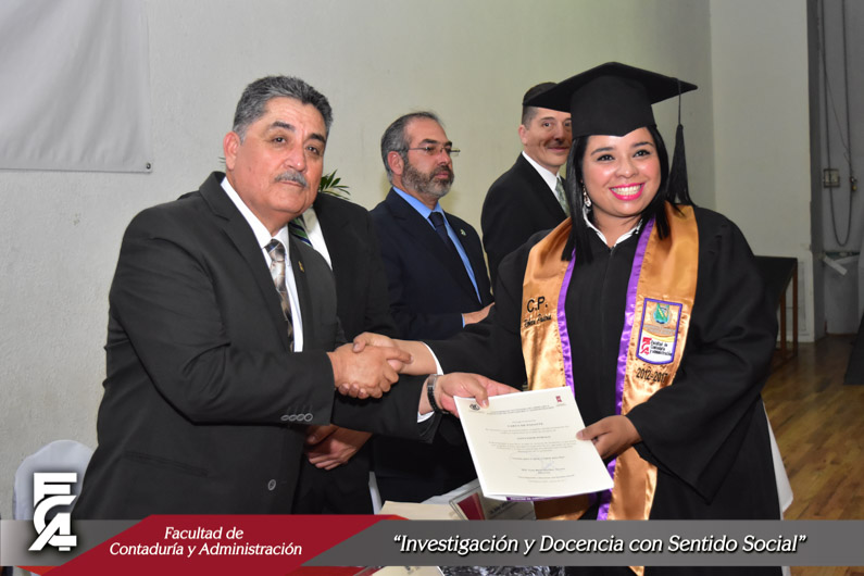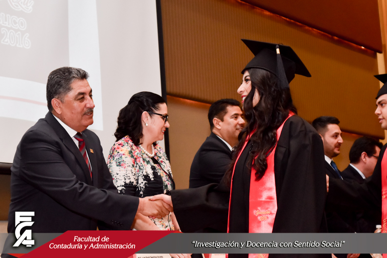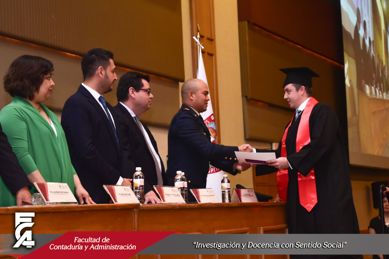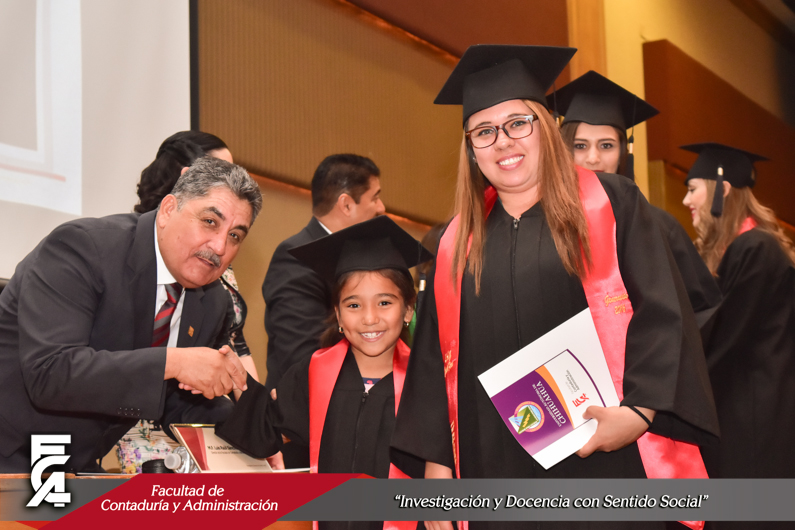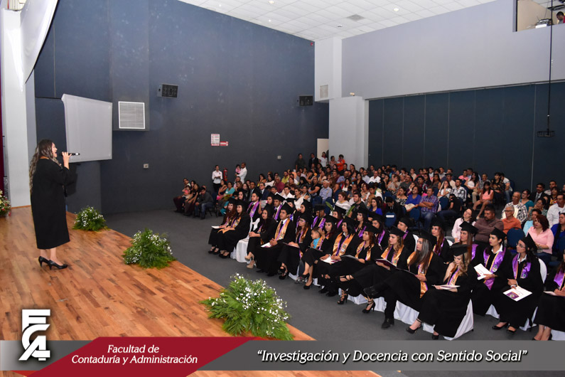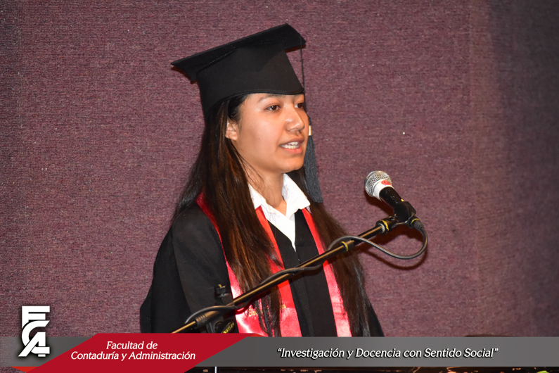 “Nos alegra recibir hoy, para este festejo a todas las familias por que la graduación es un éxito personal, pero es el fruto de un esfuerzo colectivo de padres, hermanos, abuelos que postergaron durante estos años sus necesidades y lo hicieron para apoyar a quienes hoy se gradúan, de igual manera esa alegría y ese orgullo es para compartir con aquellos que los apoyaron, nos sumamos a su orgullo y alegría por haber completado el plan de estudios que iniciaron hace 9 semestres, somos los mejores testigos de este gran esfuerzo realizado por ustedes y sus familias para alcanzar la meta que termina precisamente el día de hoy” mencionó el Director de la Facultad de Contaduría y Administración, el M.F. Luis Raúl Sánchez Acosta.