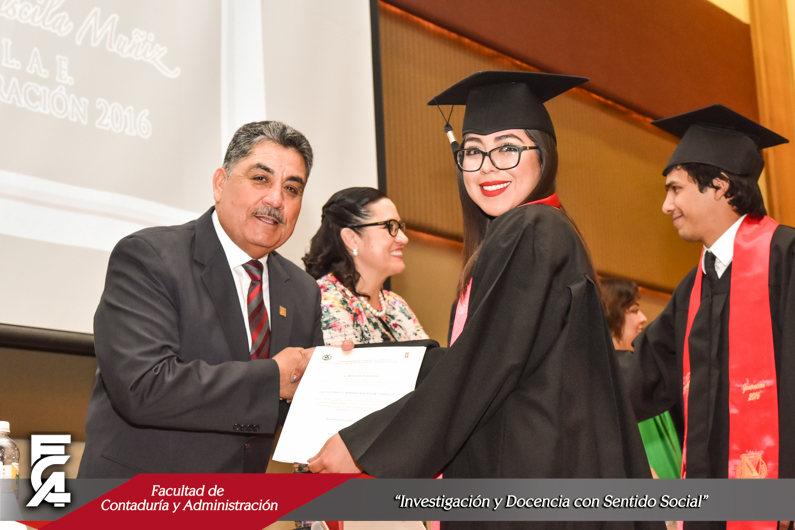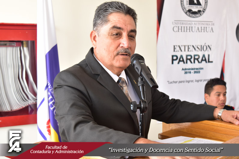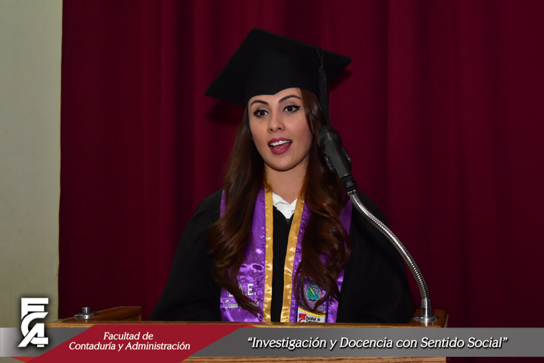 Por otra parte, el Ph.D Moisés Basurto Sotelo, Desarrollador de Nuevo Modelo Educativo de la UACH, se dirigió a los graduandos en representación del Rector M.E. Luis Alberto Fierro Ramírez, diciendo: “Una graduación para la Universidad significa, cumplir con una encomienda y es la de formar profesionistas como es el día de hoy en las carreras de Administración de Empresas, Administración Financiera, Administración Gubernamental, Administración de Tecnologías de Información y Comunicaciones, y Contador Público, jóvenes recuerden que el día de hoy ustedes y solo ustedes van a ser responsables de todas las acciones que tomen en la empresa, negocio, oficina y donde se desempeñen profesionalmente, para ello deben recordar todas las instrucciones que sus maestros les dieron, las tareas que hicieron, las exposiciones, trabajos, exámenes y todo aquello que hicieron para cumplir satisfactoriamente esta etapa en su vida”. Concluyó el Ph.D Moisés Basurto Sotelo.
