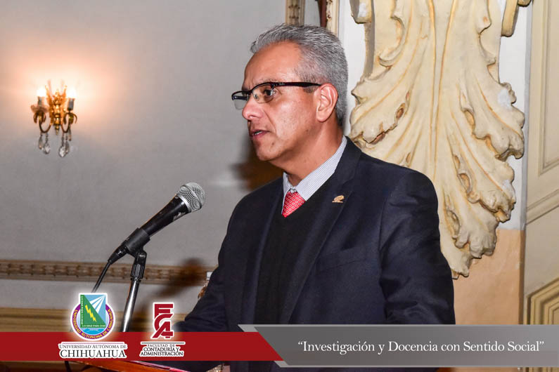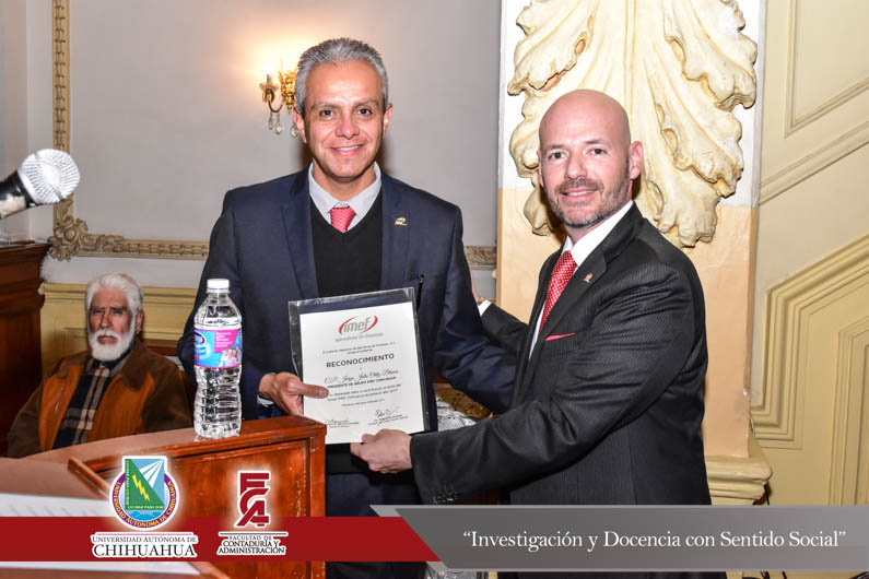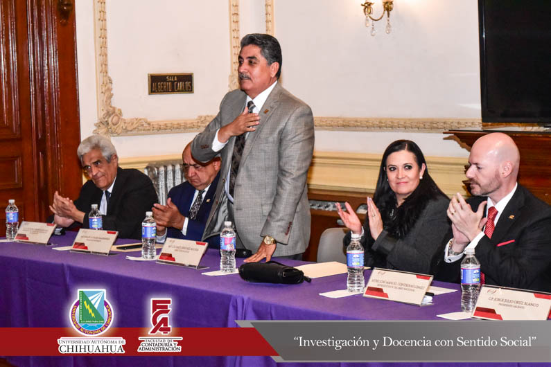 El pasado 30 de enero, en el Centro Cultural Universitario Quinta Gameros se llevó a cabo la toma de protesta a la nueva mesa directiva del Instituto Mexicano de Ejecutivos de Finanzas I.M.E.F. Chihuahua 2018, evento que contó con la presencia del M.F. Luis Raúl Sánchez Acosta, Director de Facultad de Contaduría y Administración en representación del M.E. Luis Alberto Fierro Ramírez, Rector de la Universidad Autónoma de Chihuahua, la C.P.C. Patricia Terrazas Baca, Directora General de Ingresos de la Secretaría de Hacienda en representación del Lic. Javier Corral Jurado, Gobernador Constitucional del Estado de Chihuahua, el Ing. José Manuel Contreras Lomelí, Vicepresidente Nacional del I.M.E.F., el C.P. Jorge Julio Ortíz Blanco, Presidente saliente del I.M.E.F., el M.F. Carlos Rafael Grado Salayandia, Presidente entrante, el L.E. Luis Pedro Uranga Rohana, Presidente del Colegio de Economía, el Lic. Ricardo Boone Salmón, Presidente de la Cámara de Radio y T.V., el M.E. Jorge Alberto Córdova Chávez, Administrador desconcentrado de recaudación de Chihuahua del S.A.T, así como las mesas directivas del I.M.E.F. Universitario de la U.A.CH., I.T.E.S.M. y la U.L.SA.