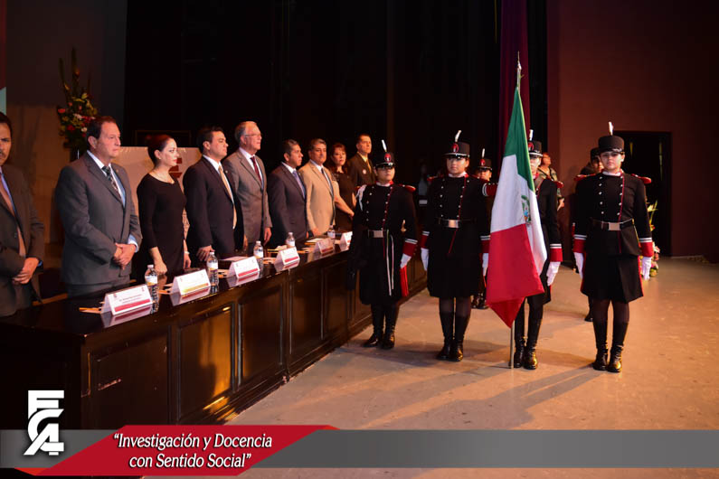El presídium estuvo honrado con la presencia del Director de la F.C.A., el M.F. Luis Raúl Sánchez Acosta; en Representación del Rector de la Universidad Autónoma de Chihuahua el M.E. Luis Alberto Fierro Ramírez, el M.A. Herik Germán Valles Baca, Director Académico de la U.A.CH; en representación del Gobernador del estado Lic. Javier Corral Jurado, el C.P. Alberto José Herrera González, Director de Pensiones Civiles del Estado; la Coordinadora General de la Extensión Delicias, C.P.C. y M.A. Hermila Mata Carrasco; el Secretario Académico, M.A.R.H. Ramón Torres Medina; y el Dr. Juan Óscar Ollivier Fierro, Secretario de Investigación y Posgrado; la Directora de la Facultad de Ciencias Agrícolas y Forestales, la M.C. Lorena Patricia Licón Trillo y el Presidente Municipal de Delicias, el M.A.P. Eliseo Compeán Fernández.