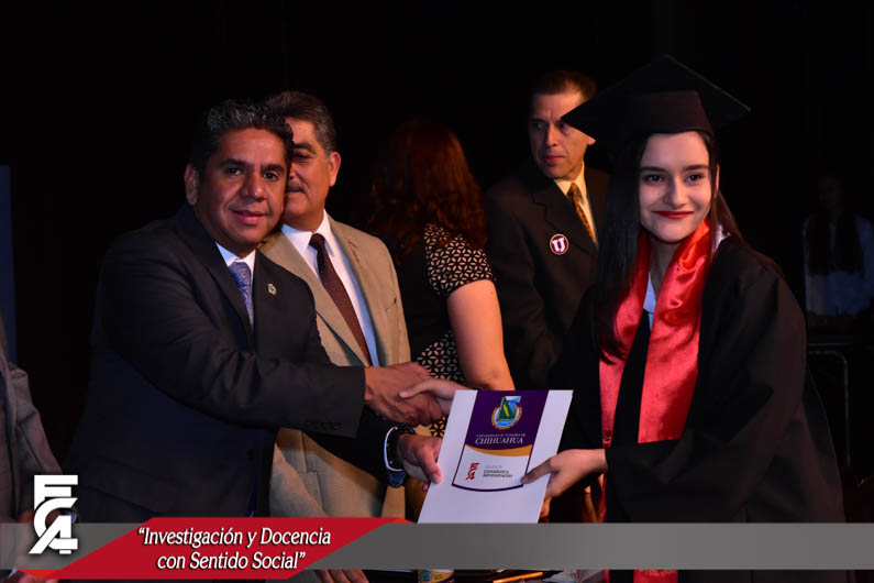 El día jueves 28 de septiembre, la Facultad de Contaduría y Administración de la UACH celebró la graduación de 76 egresados de la quincuagésima cuarta generación en las carreras de Licenciado en Administración de Empresas, Contador Público, Licenciado en Administración Financiera, Maestría en Impuestos, Maestría en Mercadotecnia, Maestría en Recursos Humanos y Maestría en Administración.