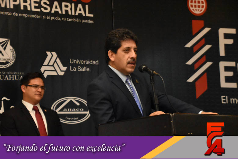 Se llevó a cabo la inauguración del Foro Empresarial 2016 en el edificio de seminarios de la FCA, el presídium estaba integrado por la Directora de la FCA M.A.R.H. Liliana Álvarez Loya; el M.F.C. Jesus Enrique Pallares Ronquillo en representacion del Rector M.C. Jesús Enrique Seañez sáennz; el Presidente de la CANACINTRA el Lic. Miguel Guerrero Elías; el Dr. Héctor Martínez Lara Director de la CANACO; el Dr. José Rivera Mejía, Director del ITCH; la Lic. Margarita Ramírez Chong, jefa del dpto. de Gestion Tecnologica y Vinculación del ITCH 2; el Director de la URN el Lic. Alfredo Delgado Montes; y el Ing. Miguel Ángel Calderón Salinas coordinador del Parque de innovación de la ULSA.