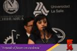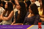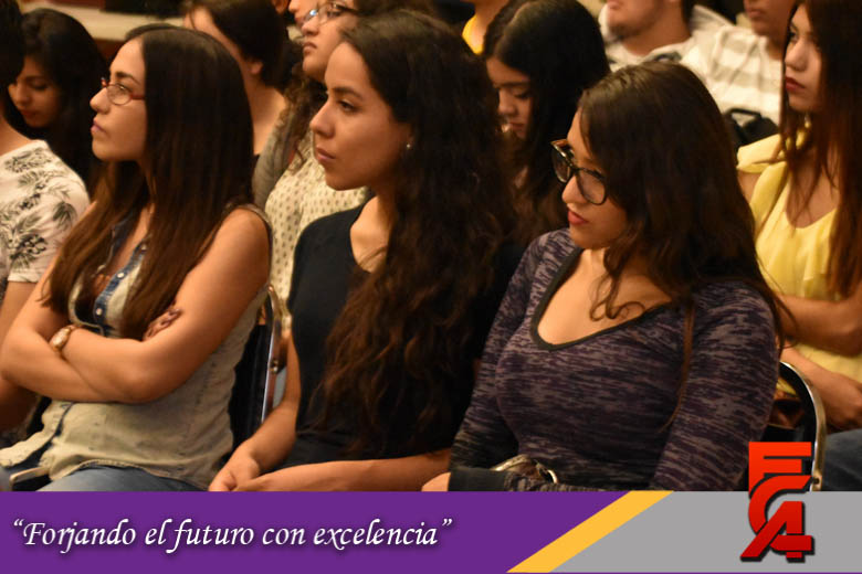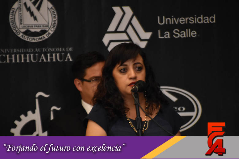 En su mensaje la Directora de la FCA comentó la alegría que sentia por que la Facultad fuera sede de este gran foro que reune a las diferentes cámaras de comercio de la ciudad así como alumnos y maestros de diferentes universidades, e invitó a los asistentes a que de cada conferencia se llevaran algo que enriqueciera su formación académica.