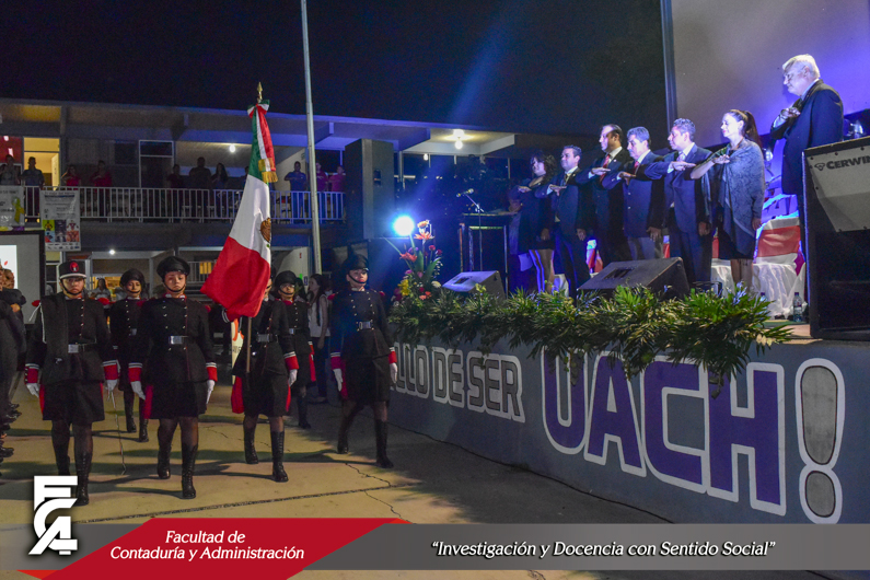 En solemne ceremonia, y ante la presencia de los Presidentes Municipales de Delicias M.A.P Eliseo Compeán Fernández, de Meoqui Lic. Ismael Pérez Pavía, de Rosales Lic. Aimmé Sánchez Díaz, de Saucillo Lic. Armando López Torres, y autoridades de diversos órdenes de gobierno, maestros, trabajadores administrativos y estudiantes, engalanaron el memorable festejo de la Extensión de la facultad más grande de la UACH, fundada en Delicias el año de 1986.