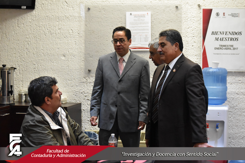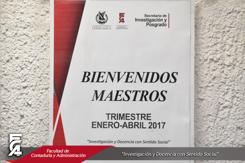 El pasado lunes 16 de enero, el Director de la Facultad de Contaduría y Administración el M.F. Luis Raúl Sánchez Acosta inició formalmente el trimestre enero-abril-2017, en el cual dio la bienvenida a los docentes que participan en el nivel de posgrado, aprovechó la ocasión para hacerles la invitación a construir juntos un nuevo sendero, en el que su trabajo respalde el gran prestigio de la institución.