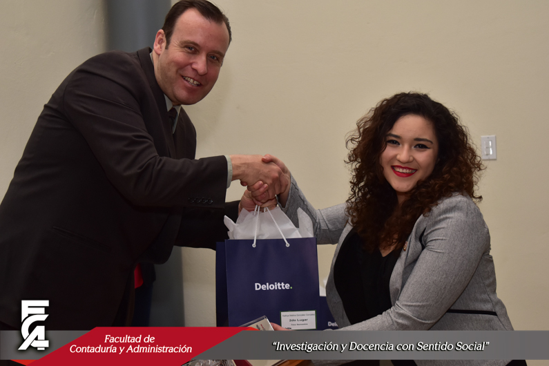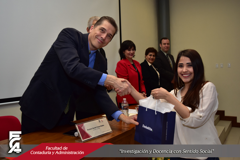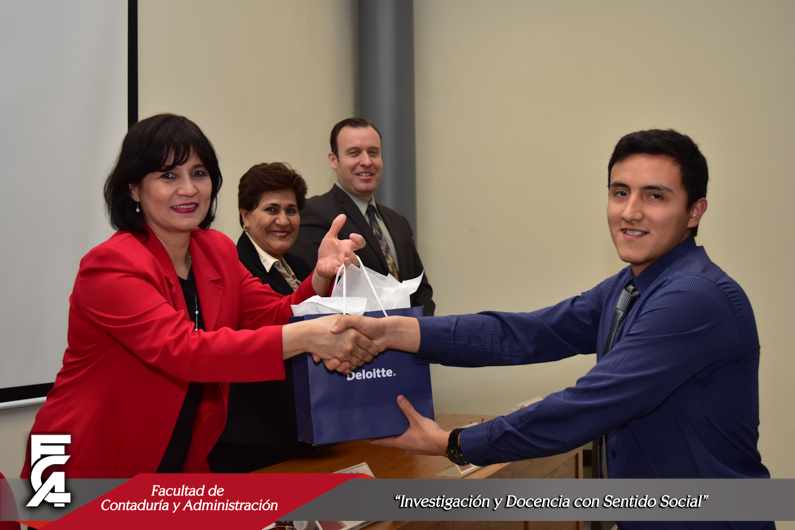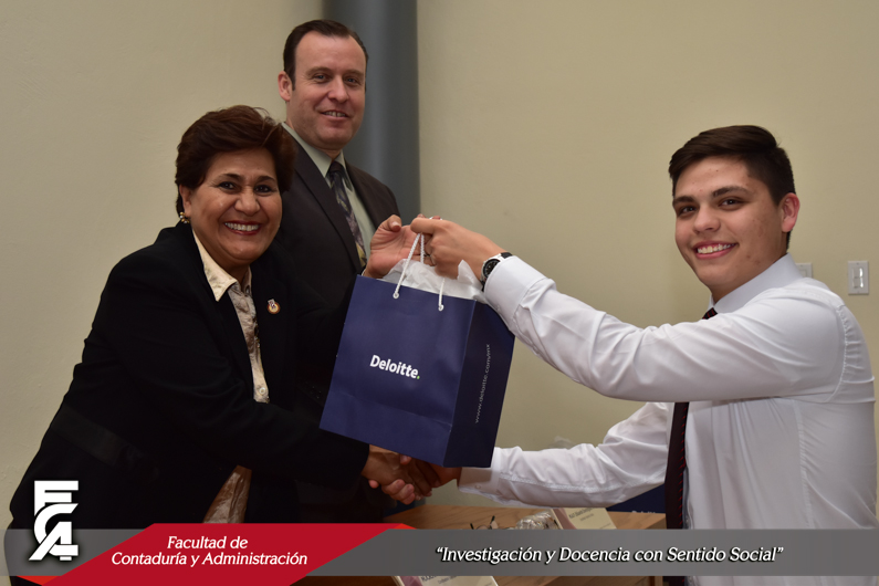 El día de ayer, la Facultad de Contaduría y Administración en conjunto con la firma Deloitte, reconocieron a los alumnos que obtuvieron los mejores promedios que cursan el 6to., 7mo. y 8vo. semestre de la Carrera de Contador Público de esta Facultad, el evento se llevó a cabo en el Auditorio del Edificio Académico de la FCA.