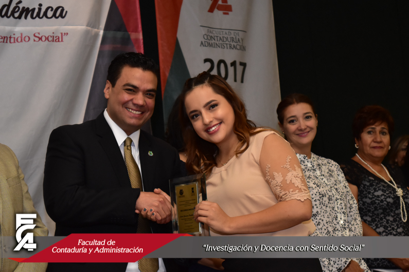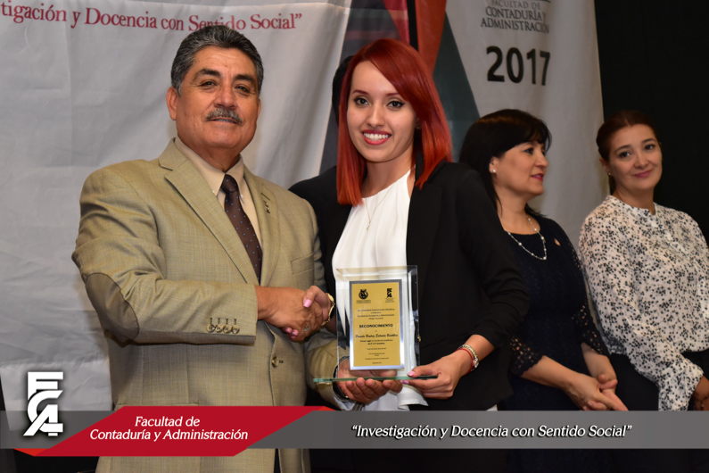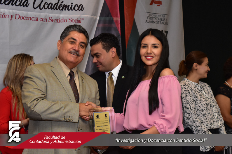 Como ya es una tradición, la Facultad de Contaduría y Administración celebró el 26 de septiembre de 2017, el Desayuno de Excelencia Académica con el objetivo de reconocer a los alumnos más destacados, el evento se llevó a cabo en el salón de Seminarios de la F.C.A., en donde se hizo entrega del Distintivo de Excelencia Académica, instituido por el H. Consejo Técnico para alumnos con promedio a partir de 9.5 y sin ninguna materia reprobada; el cual se entregó a un total de 269 alumnos, 177 son del campus Chihuahua modalidad presencial y 37 de modalidad virtual, 4 de la Extensión Parral, 40 de la Extensión Delicias y 11 de la Extensión Camargo.