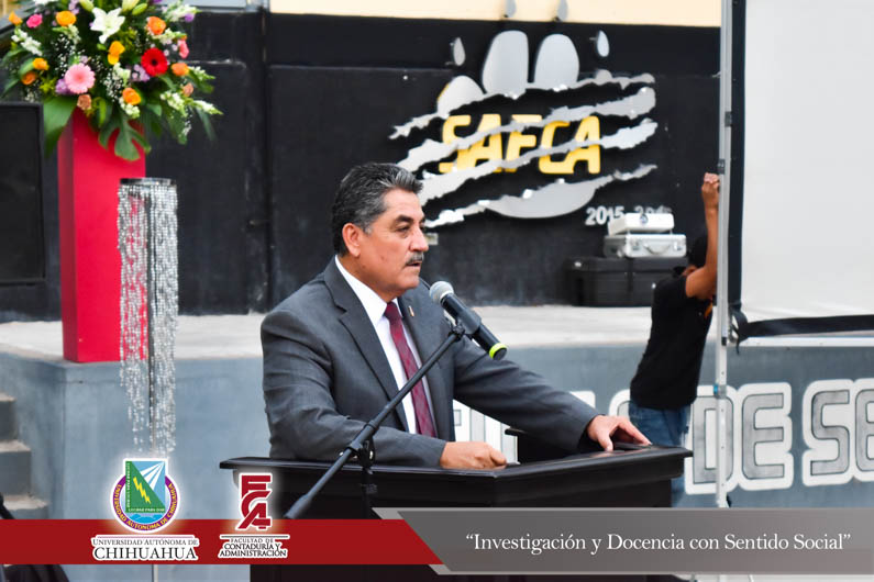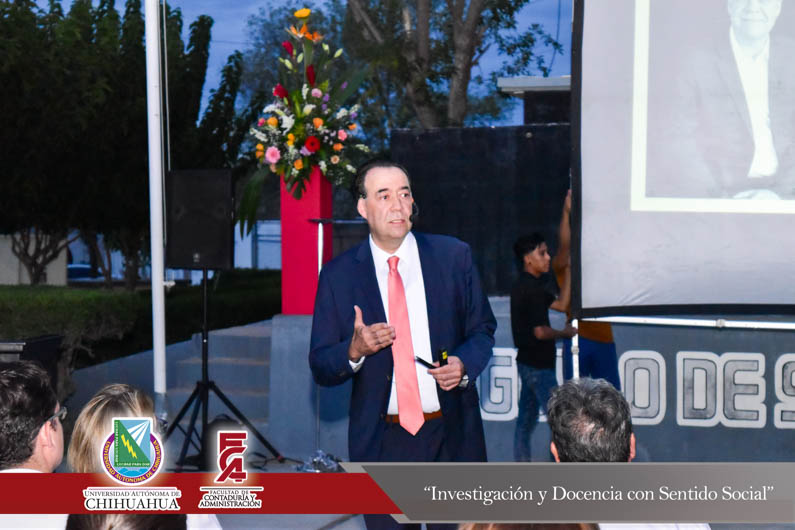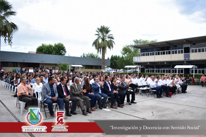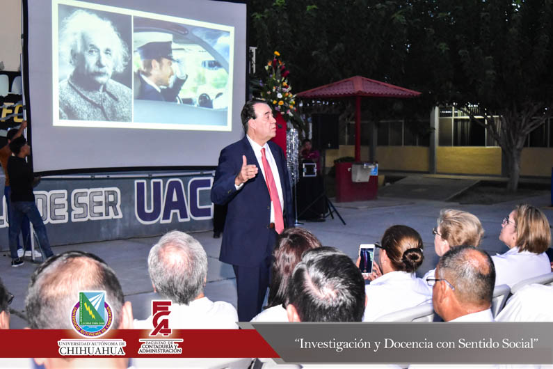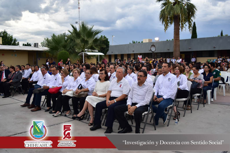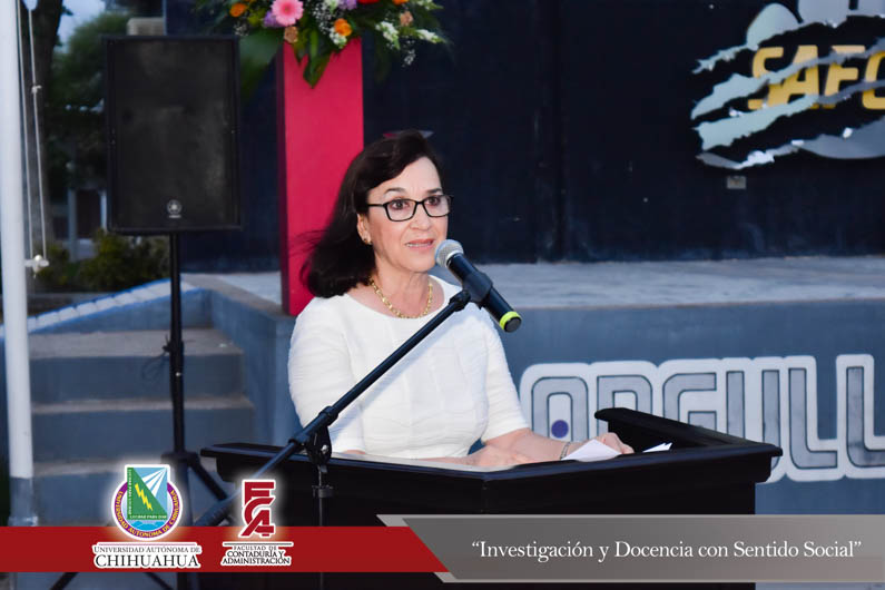 El pasado viernes 24 de agosto la Extensión Delicias de la Facultad de Contaduría y Administración conmemoró el trigésimo segundo aniversario de la fundación de la Extensión en Ciudad Delicias. Encabezando la ceremonia el Director de la Facultad, el M.F. Luis Raúl Sánchez Acosta; el M.A. Alberto Aragón Ruiz, Tesorero Municipal en representación del Presidente Municipal de Delicias, el Lic. Eliseo Compeán Fernández; en representación del Rector de la Universidad Autónoma de Chihuahua, el M.E. Luis Alberto Fierro Ramírez, la M.A.R.H Paola López Suayde, Encargada del Carnet Cultural Universitario, en representación de los maestros fundadores de la F.C.A. Extensión Delicias, la Maestra Carmen Patricia Espinoza Lamas; el M.S.I. Marcelino Fraire Rodríguez; Secretario de Extensión y Difusión Cultural; el M.I. Germán Pérez Hernández, Coordinador General de Extensiones; el M.A. Fernando Ariel Durán Chávez, Coordinador Deportivo y la anfitriona del evento, la M.A. Hermila Mata Carrasco, Coordinadora de la Extensión Delicias.