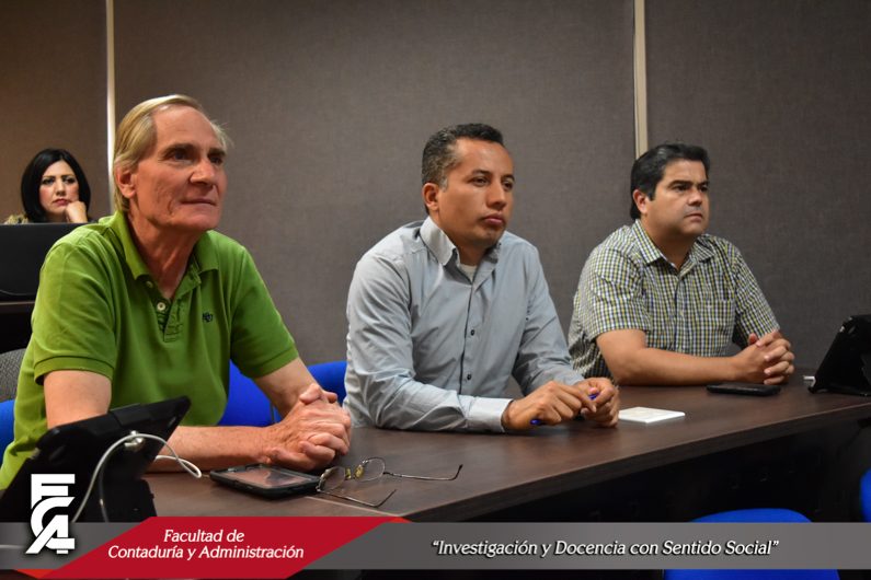 El pasado lunes 8 de mayo, dio inicio en la Facultad de Contaduría y Administración el curso sobre el Uso de Tecnologías y Estrategias Docentes Innovadoras, en donde estuvieron presentes el M.F. Luis Raúl Sánchez Acosta, Director de la FCA; el Dr. Juan Óscar Ollivier Fierro, Secretario de Investigación y Posgrado; el M.A.R.H. Ramón Torres Medina, Secretario Académico; y la Dra. Carmen Romelia Flores Morales, Secretaria de Planeación y Desarrollo Institucional.