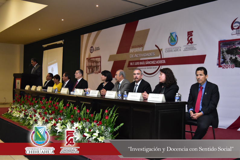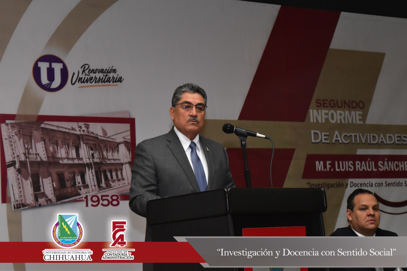 El M.F. Luis Raúl Sánchez Acosta, Director de la Facultad de Contaduría y Administración de la Universidad Autónoma de Chihuahua, presentó su Segundo Informe Anual de Actividades correspondiente al periodo 2017- 2018.