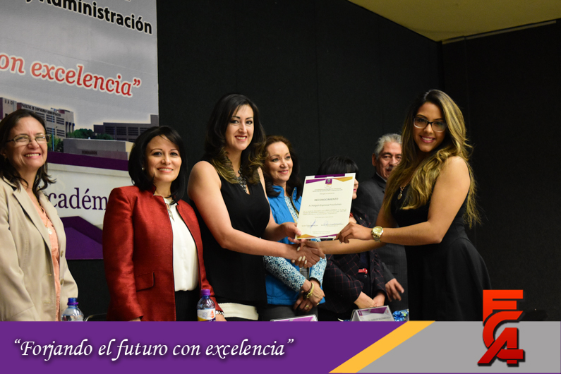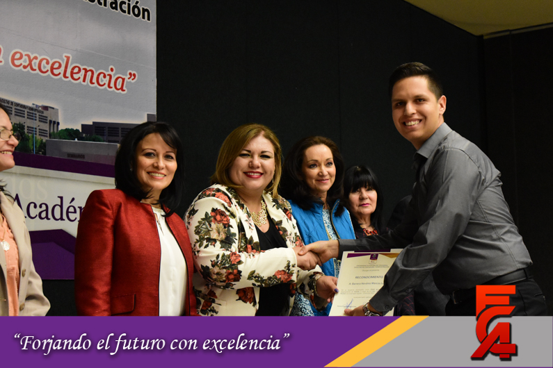 Con la presencia de la M.A.R.H. Liliana Álvarez Loya, Directora de la Facultad; la M.A.R.H. Guadalupe Maldonado Iglesias, Secretaria Académica; la M.A. Margarita Álvarez Terrazas, Secretaria Administrativa; la M.I. Cristina Cabrera, Secretaria de Extensión y Difusión; la M.A.R.H. Irma Polanco Rodríguez, Pte. Académica ABC; el M.A. y M.F. Armando Gonzales Terrazas, Secretario de Planeación y el M.A.R.H. José Luis Bordas, Secretario de Investigación y Posgrado, fue así como se hizo entrega de los reconocimientos a los alumnos quienes otorgan asesoría académica a sus compañeros por lo cual fueron elegidos como líderes académicos y que cuentan con un promedio de 9.5 a 10.