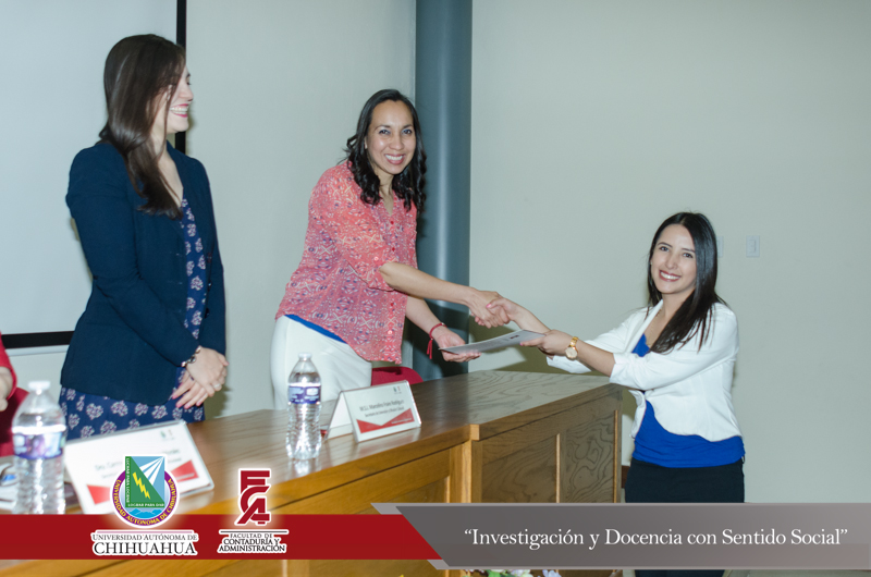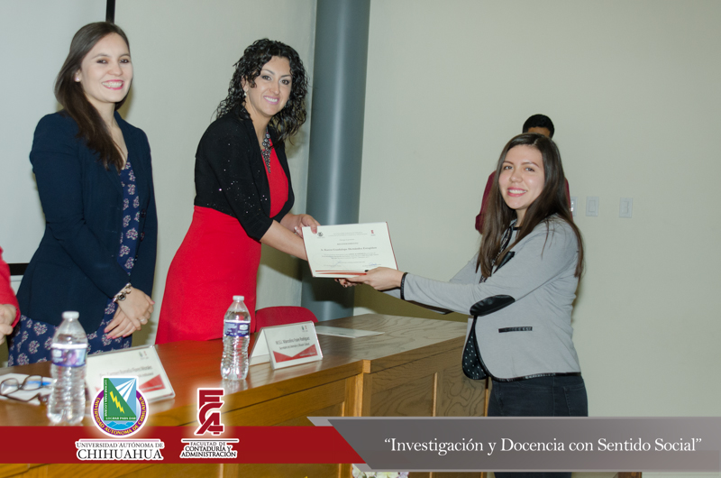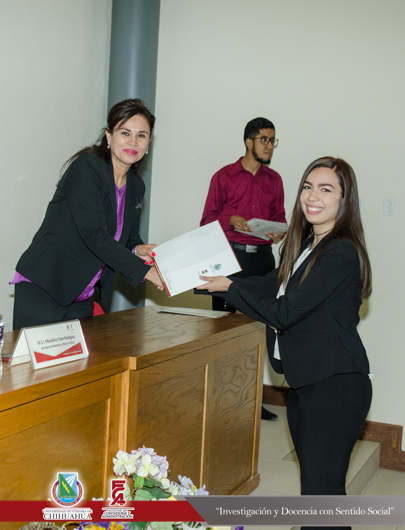 El presídium estuvo integrado por la Dra. Carmen Romelia Flores Morales, Secretaria de Planeación y Desarrollo Institucional, en representación del M.F. Luis Raúl Sánchez Acosta, Director de la Facultad de Contaduría y Administración, el Dr. Juan Óscar Ollivier Fierro, Secretario de Investigación y Posgrado y la M.F. Viviana Berroterán Martínez, Jefe de la Carrera de Contador Público.