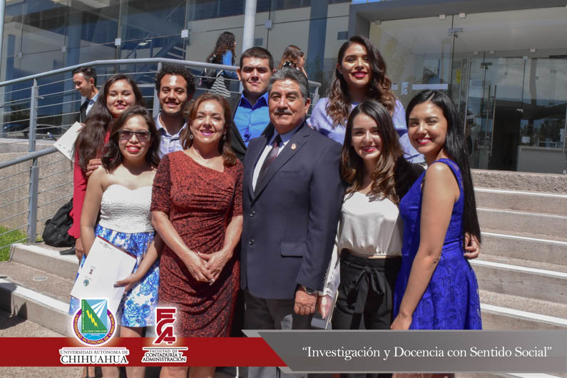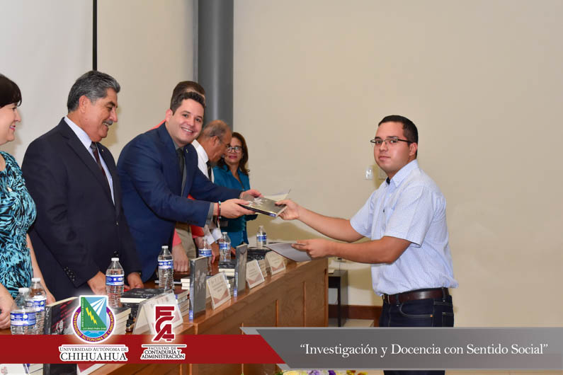 El presídium estuvo integrado por el M.F. Luis Raúl Sánchez Acosta, Director de la Facultad de Contaduría y Administración, la Dra. Carmen Romelia Flores Morales, Secretaria de Planeación y Desarrollo Institucional, el Dr. Juan Óscar Ollivier Fierro, Secretario de Investigación y Posgrado, el M.S.I. Marcelino Fraire Rodríguez, Secretario de Extensión y Difusión, el M.A. Servando Salcido Garza, Secretario Administrativo, el M.A.R.H. Ramón Torres Medina, Secretario Académico y el C.P.C. Rodolfo Landa Parra, Presidente del Instituto y Colegio de Contadores Públicos de Chihuahua, A.C.