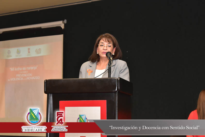 Por su parte la M.E. Elvira Sáenz López agradeció la invitación a este primer evento de “Mi lucha es naranja”, comentó que desde 1981 en Latinoamérica se conmemora cada 25 de noviembre la lucha en contra de la violencia de género, resaltando que la violencia hacia los derechos humanos afecta a todos y que 7 de cada 10 personas son mujeres, por lo que se considera una pandemia.
