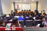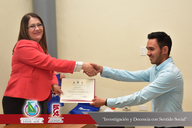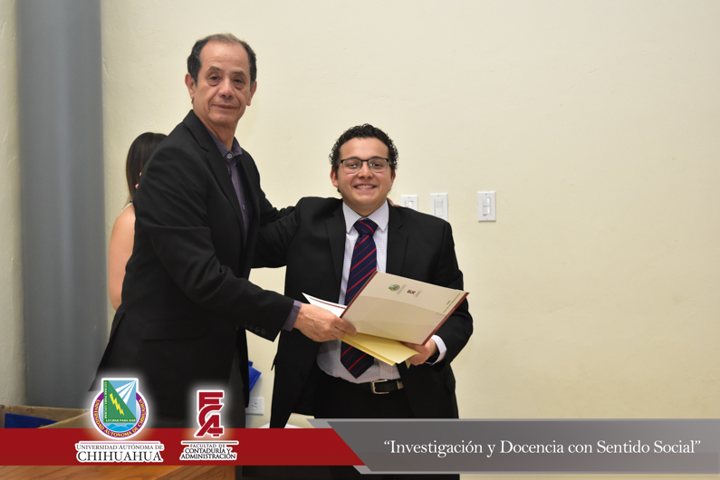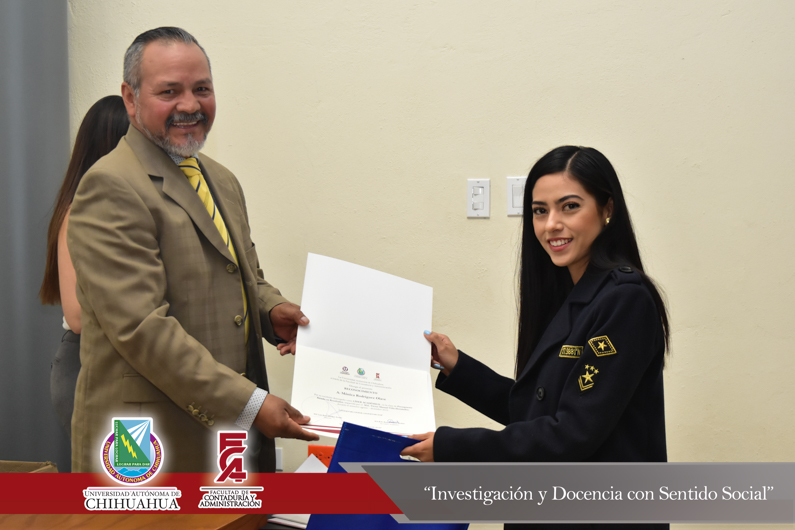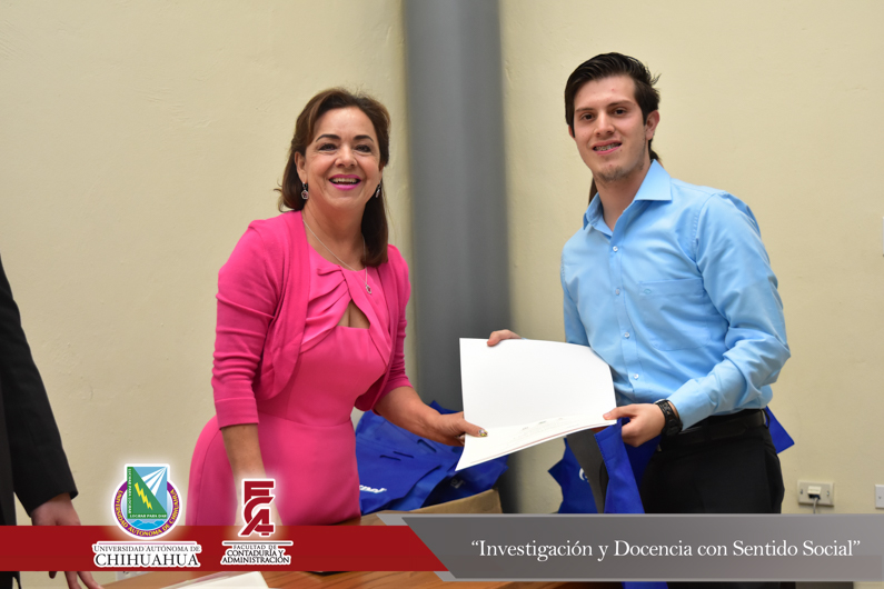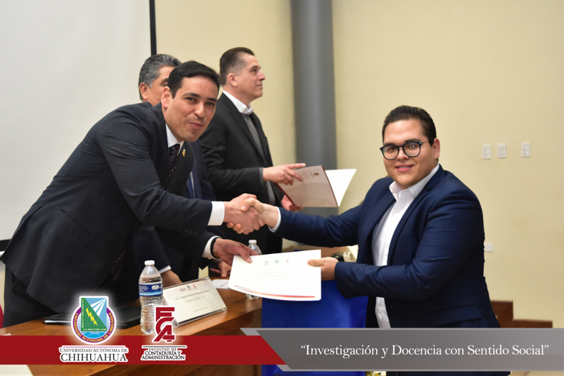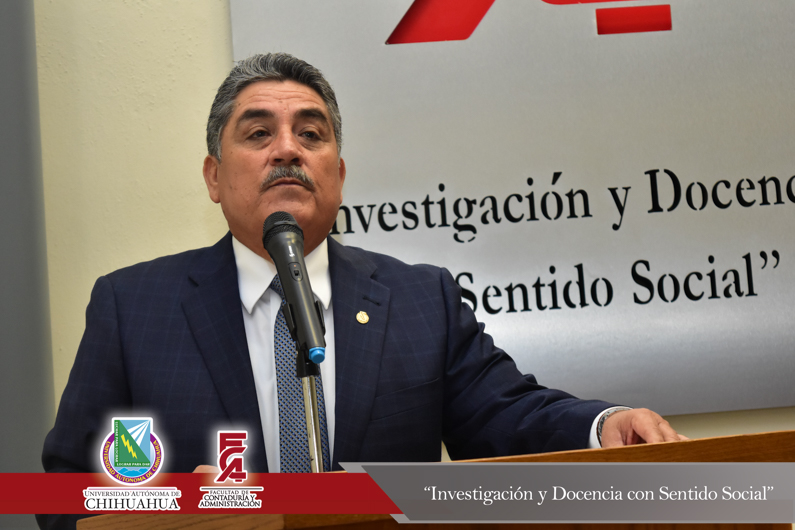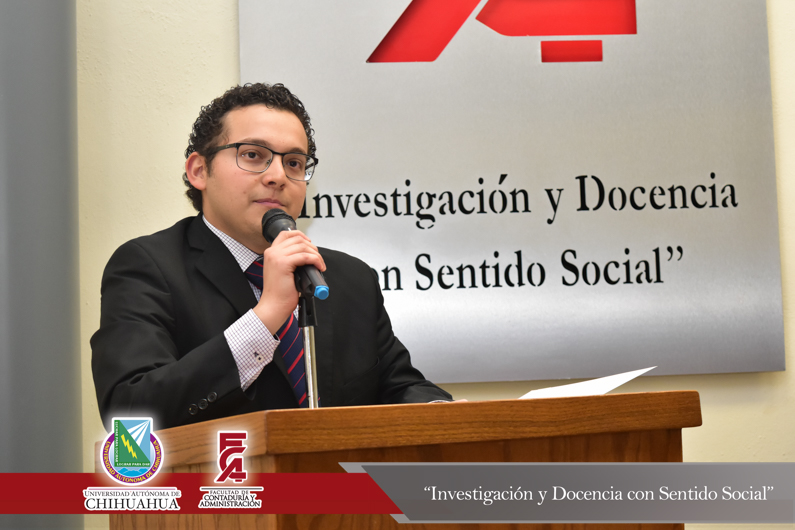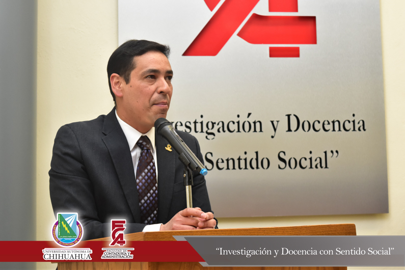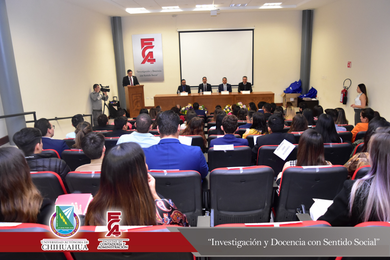 El presídium estuvo integrado por el M.F. Luis Raúl Sánchez Acosta, Director de la Facultad; el M.A.R.H. Ramón Torres Medina, Secretario Académico de la Facultad; el L.A.E. Ángel Manuel Domínguez Romero, Gerente de Aspel Chihuahua y el C.P.C. Leopoldo Manuel Manjarrez Alvídrez, Presidente del Consejo Directivo del Instituto y Colegio de Contadores Públicos de Chihuahua , A.C.