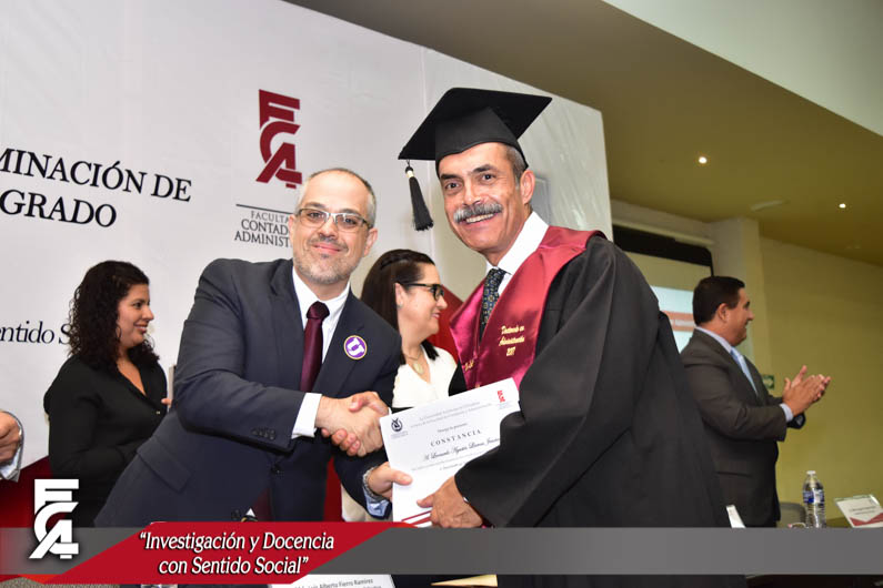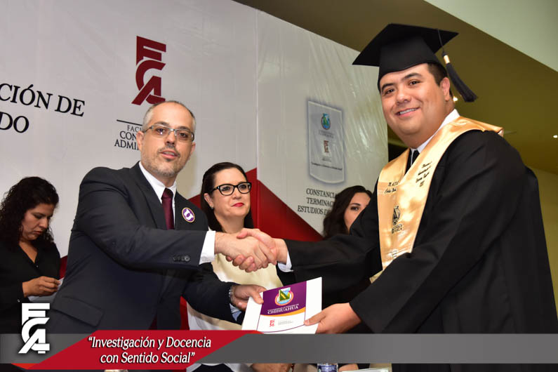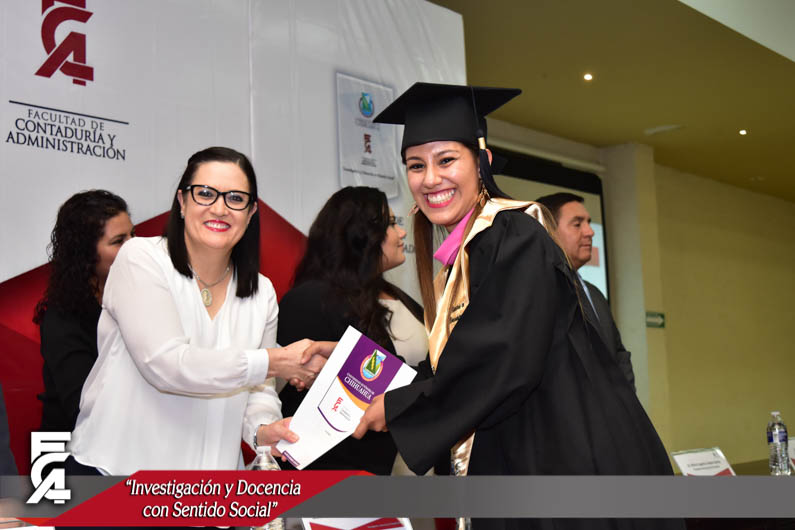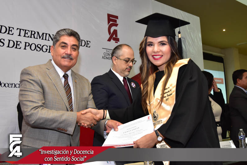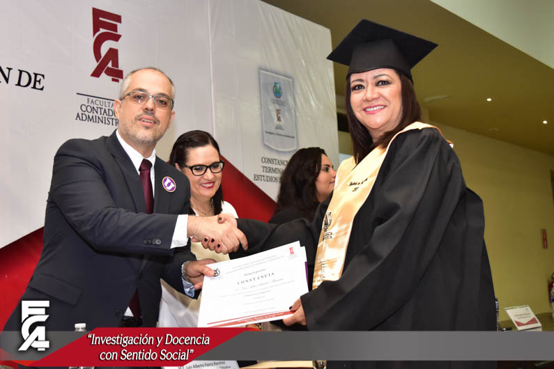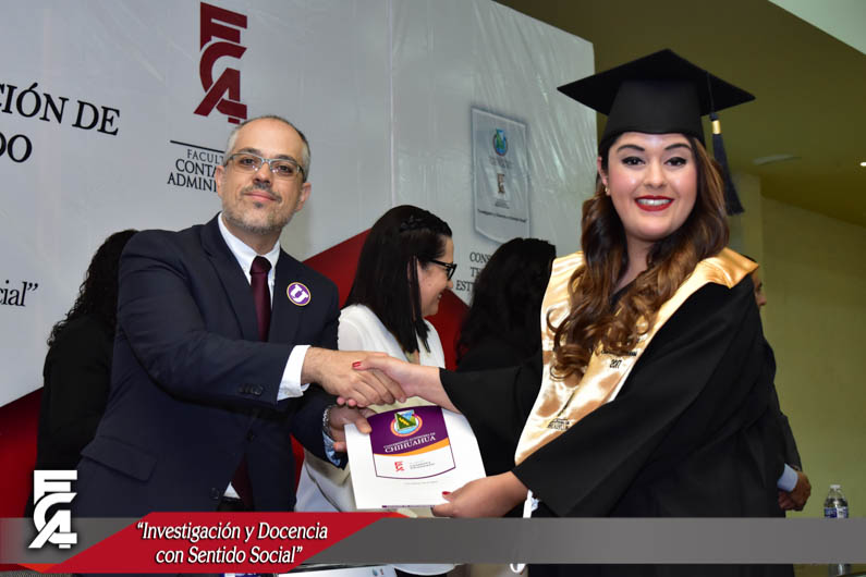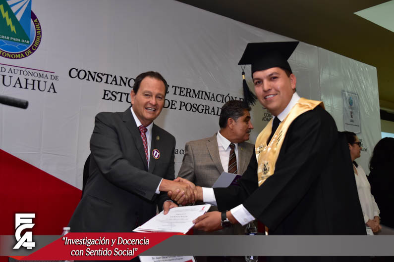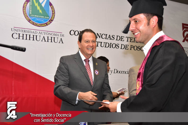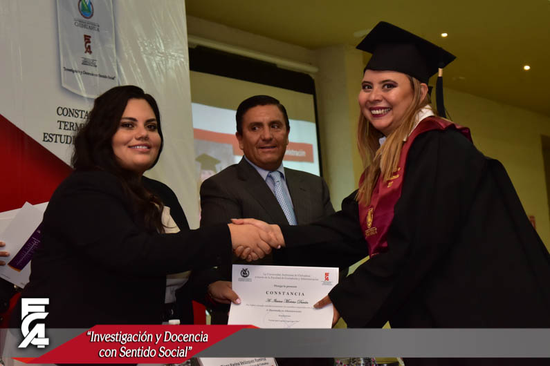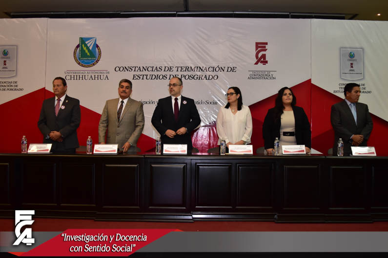 La ceremonia de graduación, fue presidida por el Director de la Facultad de Contaduría y Administración de la U.A.CH. el M.F. Luis Raúl Sánchez Acosta, la C.P. Patricia Terrazas Baca, Directora de Ingresos de Hacienda en representación del Gobernador Constitucional del Estado de Chihuahua, el Lic. Javier Corral Jurado, el M.I. Ricardo Ramón Torres Knight, Director de Planeación y Desarrollo Institucional de la U.A.CH, en representación del Rector de nuestra máxima casa de estudios el M.E. Luis Alberto Fierro Ramírez, el Lic. Arturo Aranda Erives, Jefe del Departamento de Infraestructura Educativa de la Dirección de Desarrollo Humano y Educación en representación del Presidente Municipal de Chihuahua, la Lic. María Eugenia Campos Galván, la Lic. Berenice Sánchez Loya, Asesora del Congreso del Estado en representación de la Dip. Blanca Amelia Gámez Gutiérrez, Presidente del Honorable Congreso del Estado de Chihuahua, y el Dr. Juan Óscar Ollivier Fierro, Secretario de Investigación y Posgrado de la Facultad de Contaduría y Administración.