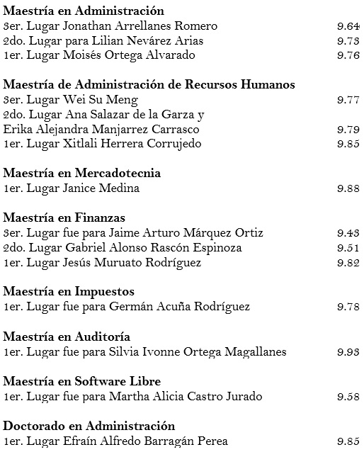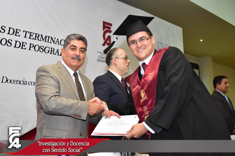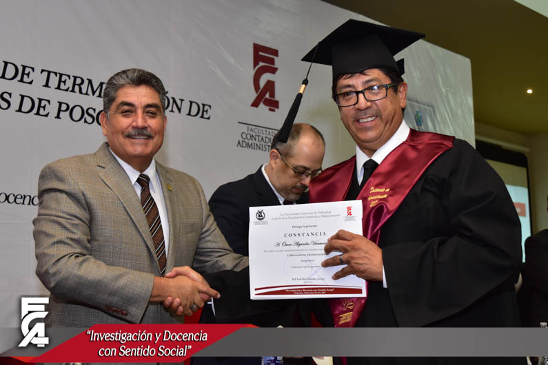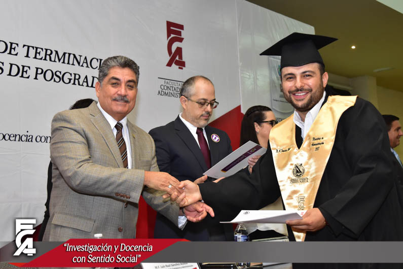 El día viernes 6 de octubre del presente año, se llevó a cabo la ceremonia de entrega de constancias de terminación de estudios y reconocimientos de los mejores promedios de los candidatos a grado de Maestrías y Doctorado de la generación 2015-2017 de la Facultad de Contaduría y Administración.