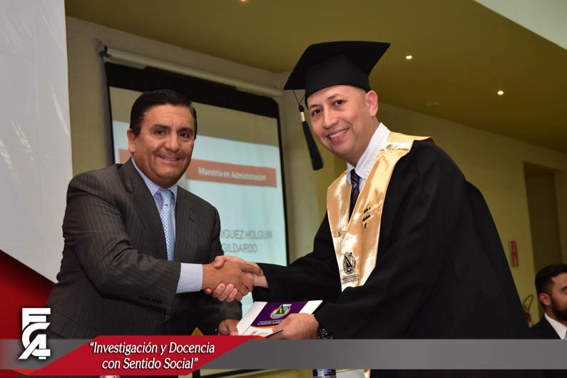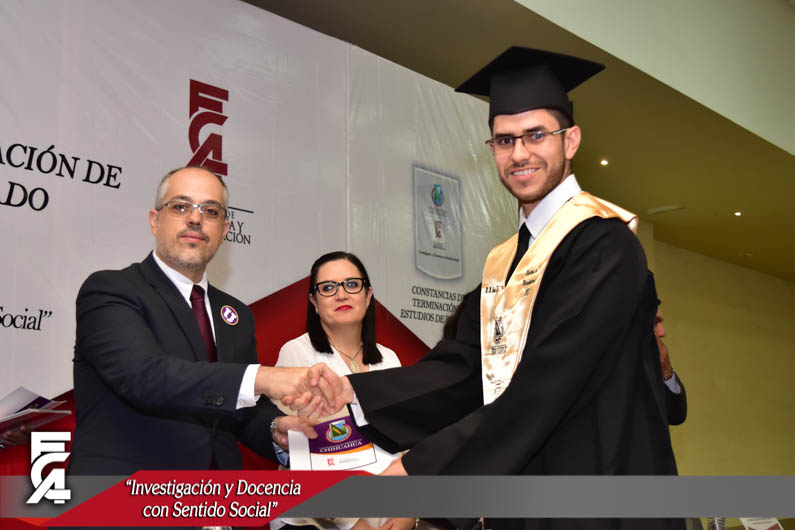 El M.F. Luis Raúl Sánchez Acosta, dirigió su mensaje a los graduandos exhortándolos a reflexionar sobre las experiencias vividas durante estos últimos años en la Facultad y seguir preparándose, a llevar muy en alto el nombre de su Alma Mater, también agradeció a los docentes que lo acompañaron de la F.C.A., así como a todos los presentes por estar apoyándolos en el camino de los que hoy culminan esta gran etapa.